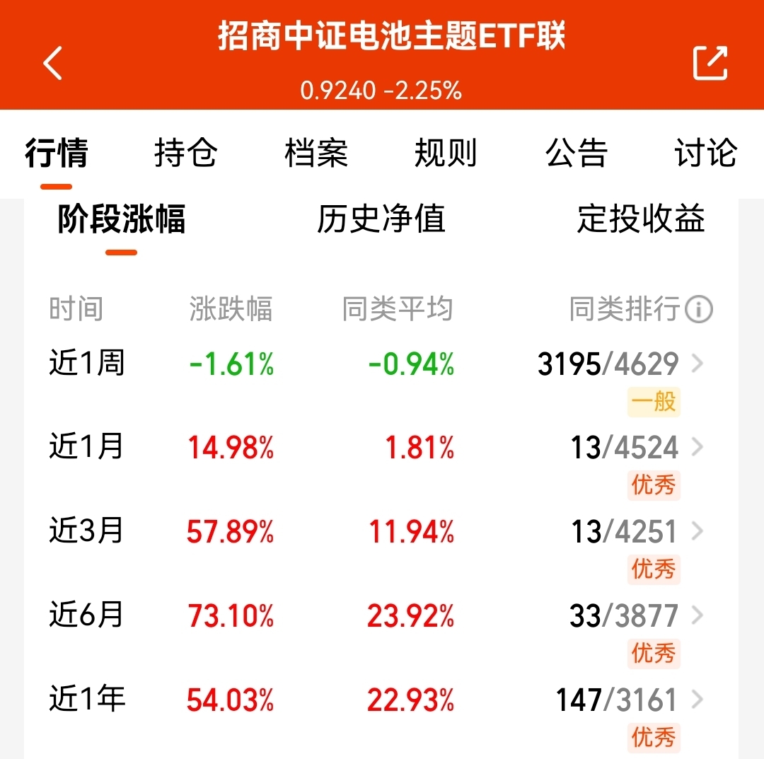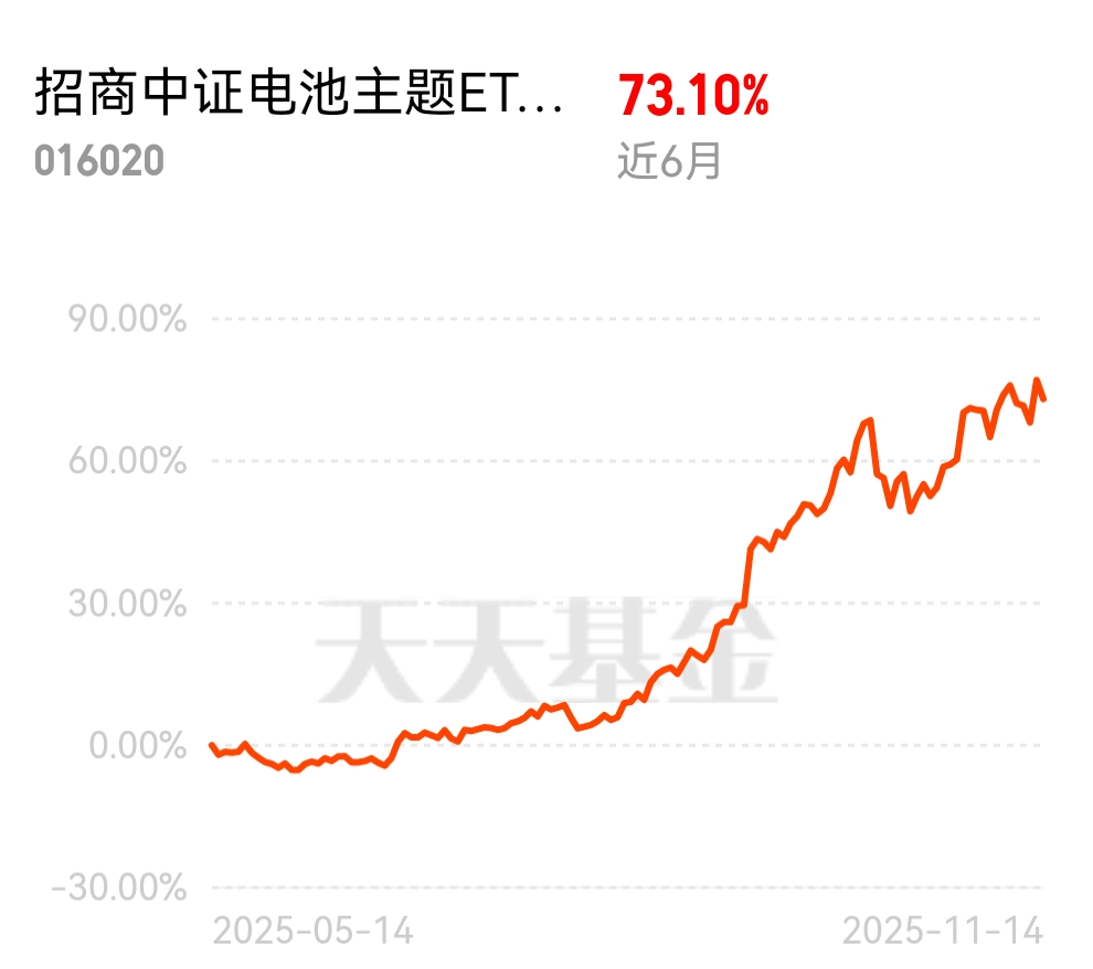 科技线还是混乱,电池板块主要是在消化宁王的消息,趋势依然较CPO等科技板块走的稳定,我还是继续看好这支$招商中证电池主题ETF联接C$ ,主打固态电池,近一个月涨了14.98%,近半年收益73.10%,目前也已经跑赢科技了,赚钱效应我觉得还是不错滴;
