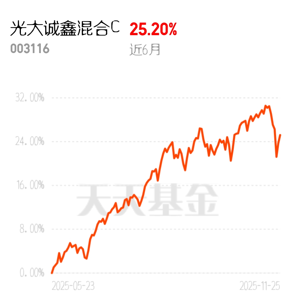 市场行情时好时坏,咱理财就求个稳字当头。光大诚鑫混合C近六个月25.20%的收益