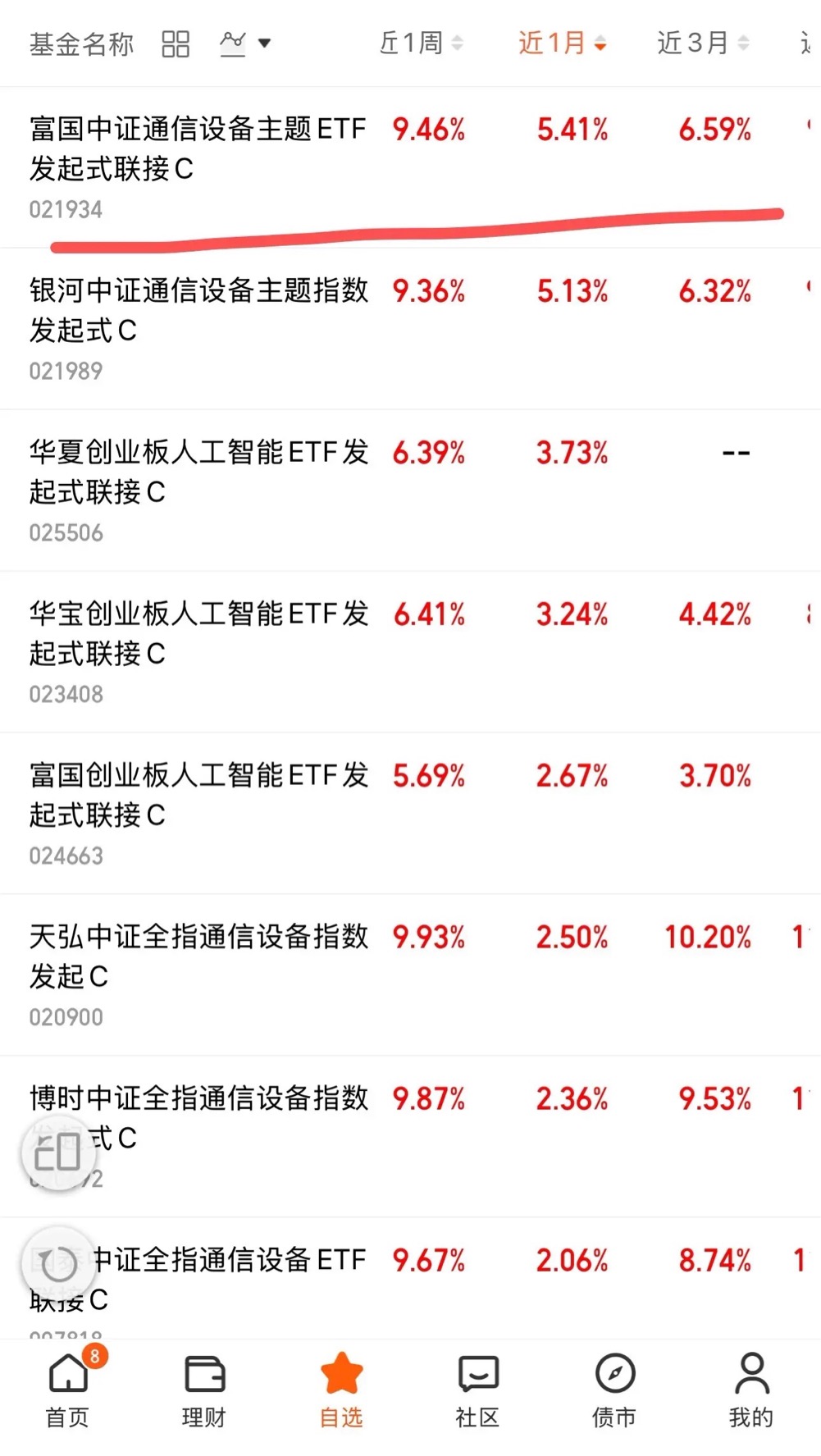 眼下广发新能源车电池那块没啥动静,倒是更关注手里的富国中证通信设备主题ETF联接