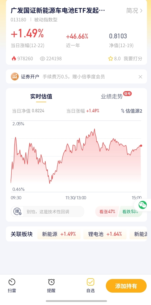 15. 【广发国证新能源车电池ETF估值播报+12.22行情】