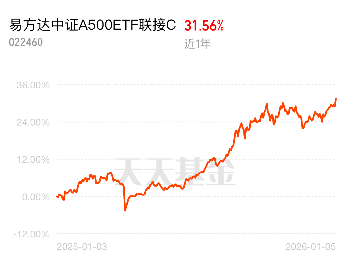 年末市场情绪向好,大家都在找稳健又有弹性的投资标的。$易方达中证A500ETF联接C$ 近 1 年 31.56%,既享受新产业增长红利,又不用承担单一行业风险,新手也能放心投。