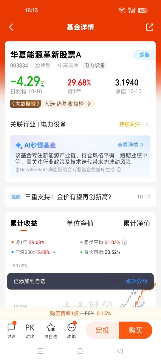 #分享国庆见闻,晒收益,瓜分好礼!# 国庆清晨登本地名山观日出时,山间连绵的风电塔架给我留下了深刻印象——数十米高的扇叶在晨风中匀速转动,与云海日出构成一幅独特的工业景观。这一幕恰是新能源产业崛起的微观缩影:国家能源局数据显示,2024年全国可再生能源发电量已占总发电量的35%,其中风电太阳能发电量合计达1.83万亿千瓦时 ,而新能源累计装机占比更是突破42%,正式超越煤电成为第一大电源。在"双碳"目标指引下,新能源占比迈向50%已成必然趋势,$华夏能源革新股票A$ (003834)作为聚焦该赛道的主动管理型基金,其投资价值值得深入剖析。