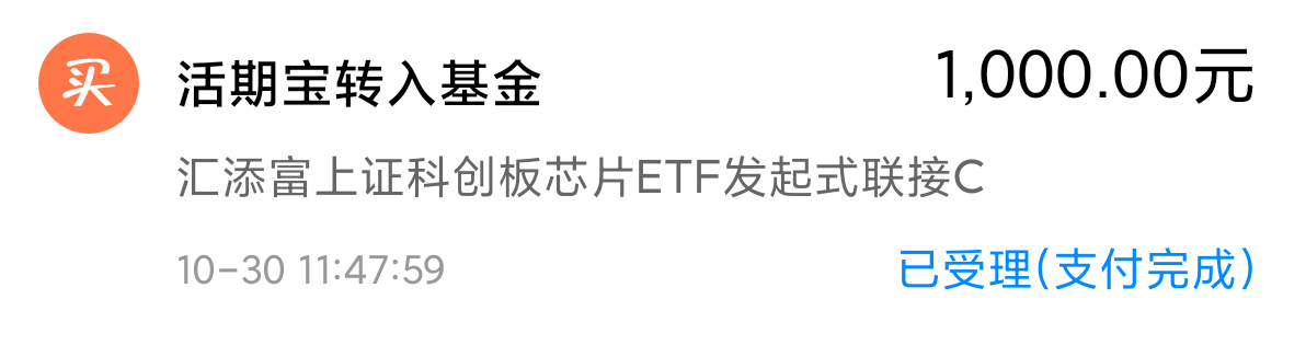 买进1000的 $汇添富上证科创板芯片ETF发起式联接C(OTCFUND|020629)$