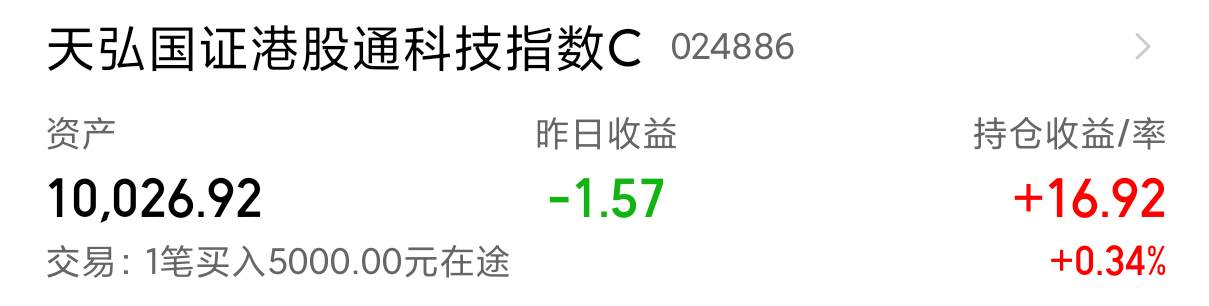 买进5000的 $天弘国证港股通科技指数C(OTCFUND|024886)$