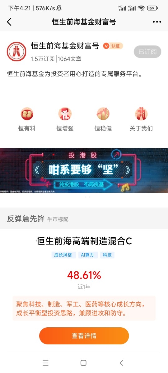 在投资这场漫长的修行中,遇到一只契合需求的基金就像遇到一位靠谱的向导。恒生前海恒源天利债券A用清晰的策略、亮眼的业绩和出色的风控,给了我在震荡市中前行的勇气。我坚信,有这样一只"能攻善守"的基金陪伴,既能远离行情波动带来的焦虑,又能在时间的沉淀中实现资产的稳健增长,这正是普通投资者最值得追求的投资状态。@恒生前海基金