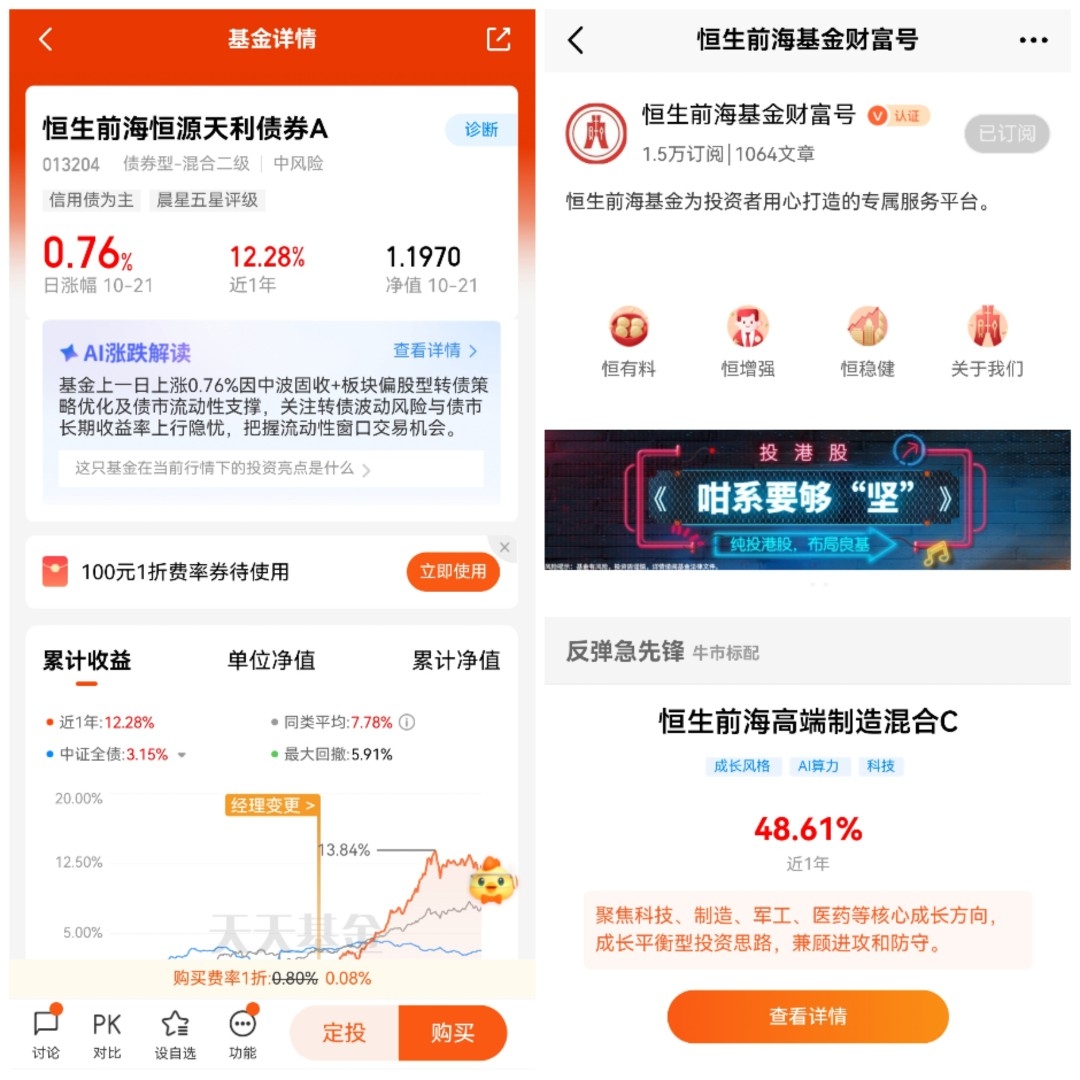 对我而言,恒生前海恒源天利债券A的吸引力,不仅在于它能带来12%以上的年度收益,更在于它让我在投资中找回了从容。不再需要每天紧盯大盘走势,不必为短期波动焦虑失眠,却能享受超越多数固收产品的收益回报。在当前震荡加剧的市场环境中,这样一只"稳健为盾、进取为矛"的二级债基,无疑是普通投资者穿越市场周期的理想选择,这也是我愿意长期持有它的根本原因。@恒生前海基金