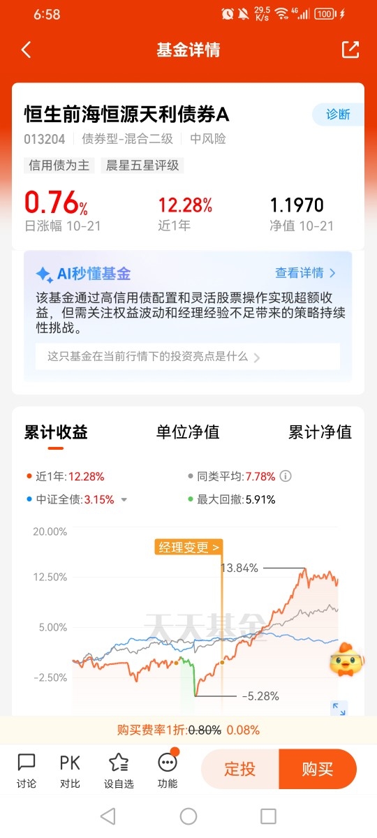 终于找到适合我的“稳健款”我准备配置 $恒生前海恒源天利债券A$ 。