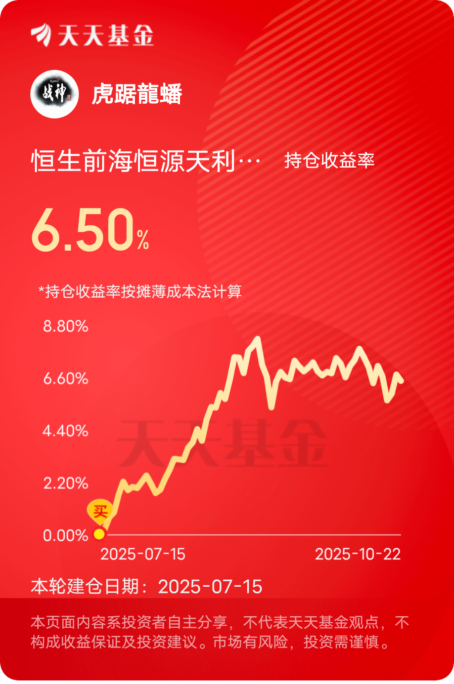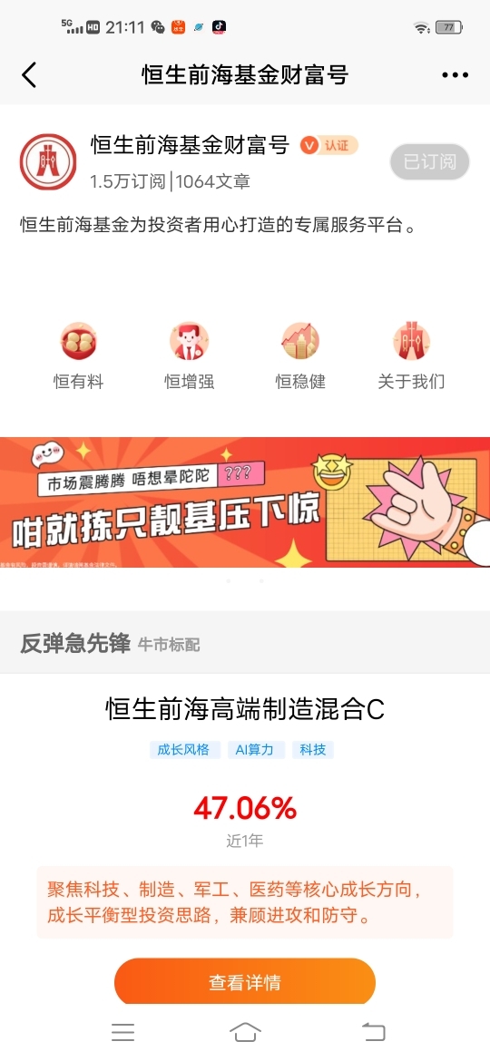 基民小虎是恒生前海基金的铁粉,目前的资产配置中,坚定持有$恒生前海恒源天利债券C$ $恒生前海短债债券C$,近期准备定投$恒生前海高端制造混合C$ ,平衡“进攻”与“防守”,争取获得更好的收益回报。@恒生前海基金
