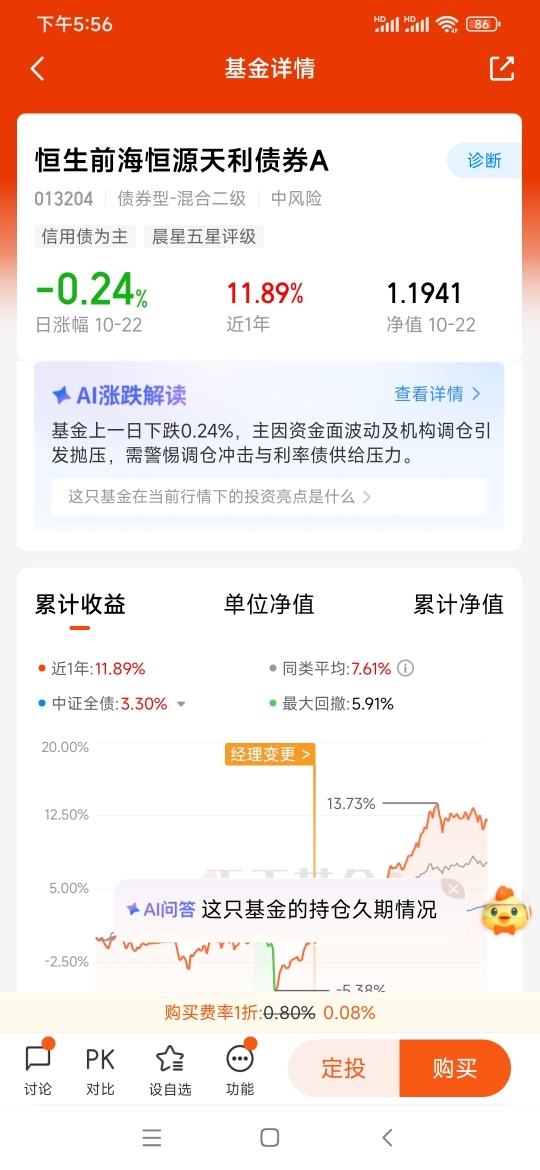 我是一名普通上班族,时间不多,但又不甘心让手里的钱闲着。工作几年后慢慢形成了自己的理财思路——不求暴富,但求稳中有进。所以我一直比较关注债券基金,尤其是那种兼顾稳健和弹性的二级债基。最近研究了一阵子,最终把目光投向了恒生前海恒源天利债券A(013204),越了解越觉得这是一只值得“上车”的产品。