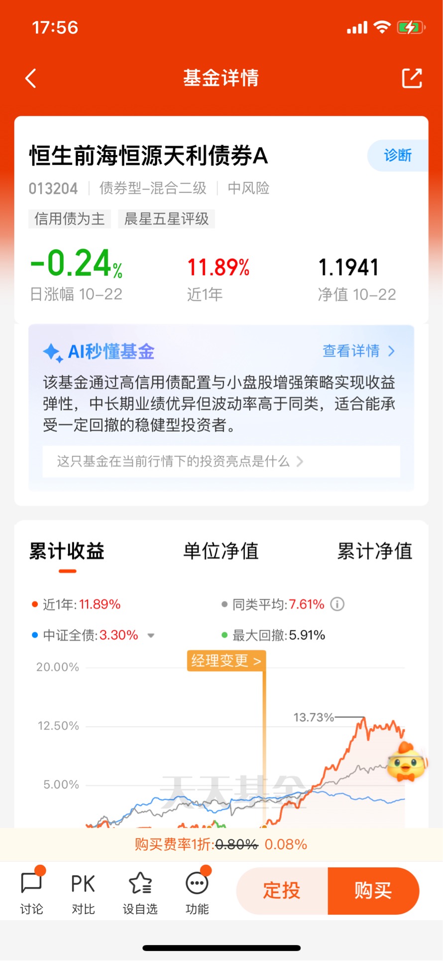 三、恒生前海恒源天利债券A(013204):一只值得关注的二级债基