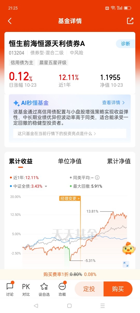 $恒生前海恒源天利债券A$最吸引我的特点是:攻守兼备、业绩优异,回撤控制能力十分