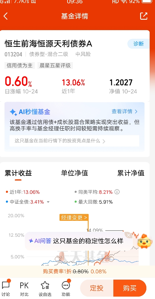 $恒生前海恒源天利债券A$最吸引我的特点是这支基金即可以买股票资产也可以买债券资