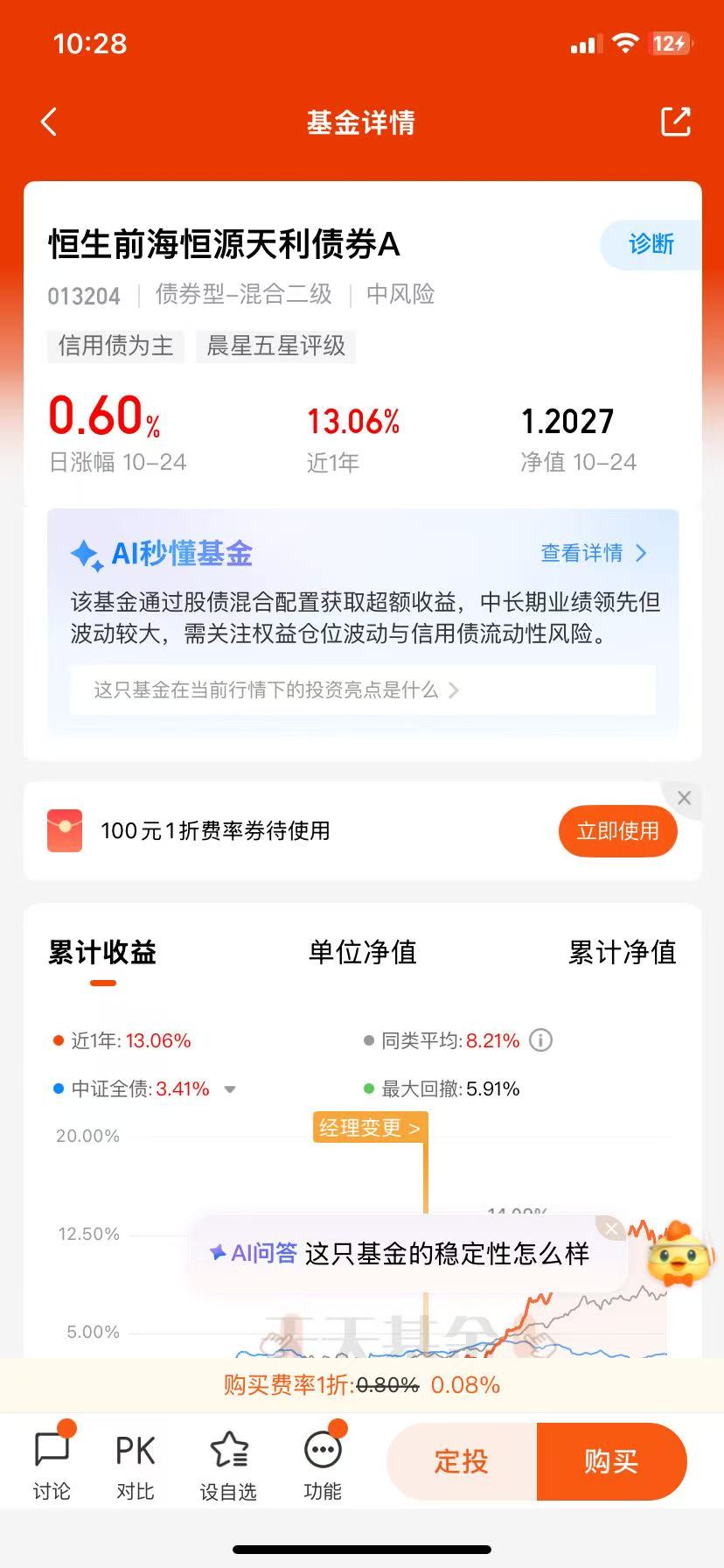 一方面,资金面或将延续宽松态势,债券市场受益于流动性宽松的利好。从更长期的视角来看,债券资产具有低波动特征,仍然是投资者配置上不可或缺的底仓资产之一。另一方面,权益市场受益于一系列刺激政策落地,以及中国新兴科技的爆发,夯实股市发展基础,A股和港股市场优质权益资产的价值被越来越多海内外投资者所关注。如何一键实现稳健的资产配置,并兼顾权益市场的弹性?恒生前海恒源天利债券A或是一个理想的选择,值得关注!@恒生前海基金