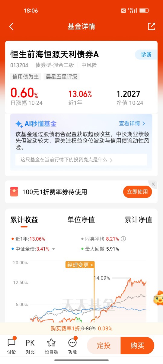 其实对普通投资者而言,选基金就像找“长期伙伴”,比起短期爆发力,更重要的是“三观契合”——它的策略是否清晰?风险是否可控?风格是否稳定?$恒生前海恒源天利债券A$ 的R2风险等级、透明的股债配置逻辑,以及历任基金经理延续的“不赌不博”风格,都让我觉得“看得见、摸得着、拿得住”。虽然目前还未持有,但我已把它加入自选密切跟踪:毕竟在不确定的市场里,能找到一只“守得住底、攻得出彩”的产品,本身就是一种底气。