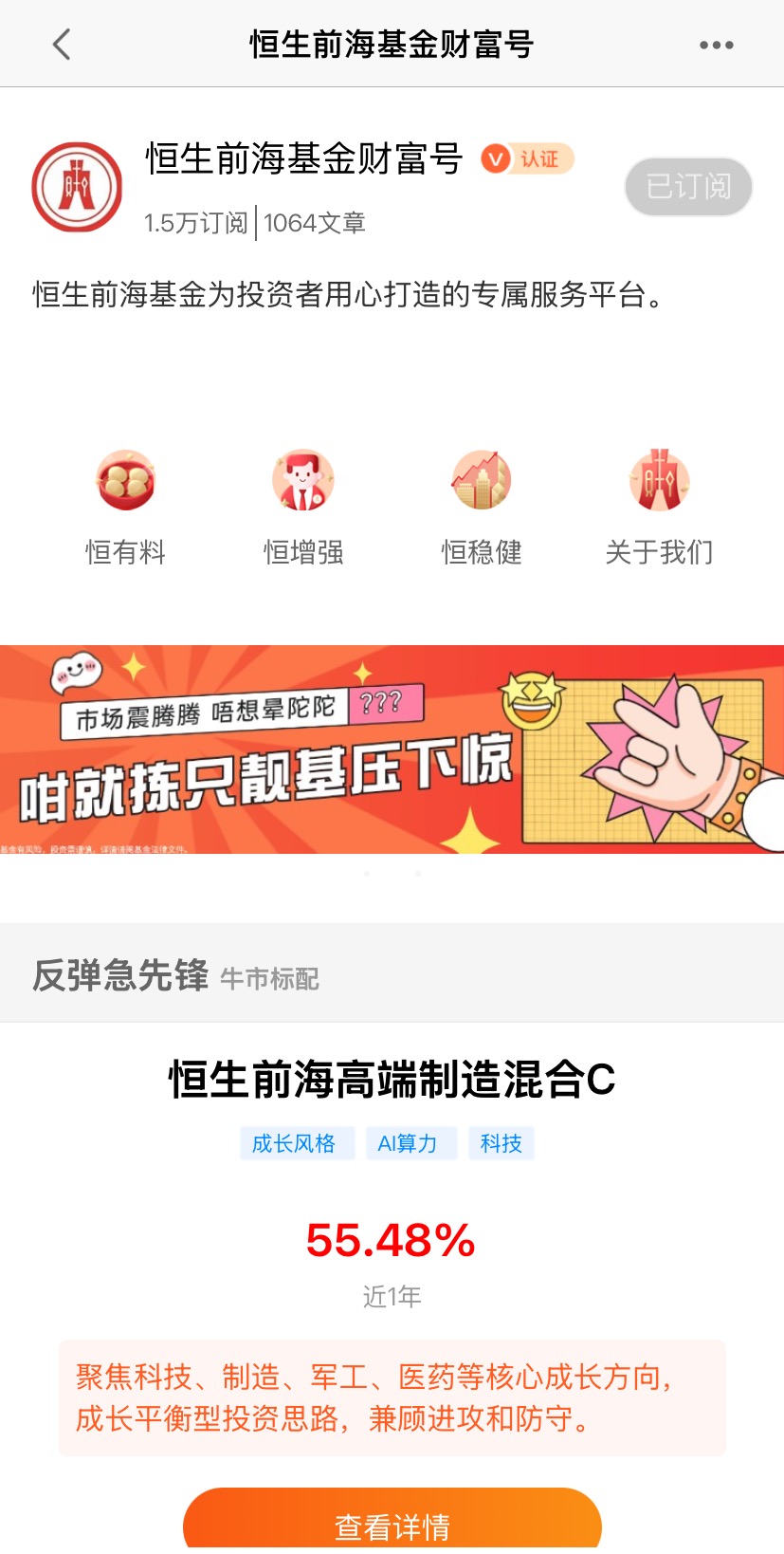二级债基是当前市场环境下“稳中求进”的优选工具,而恒生前海恒源天利A凭借其稳健的业绩、聪明的持仓布局,成为追求5%-8%年化收益、能接受最大3%回撤的稳健投资者的理想选择。对于不想错过股市上涨机会,又希望投资过程更平稳的投资者,该基金提供了“进可攻、退可守”的从容体验。@恒生前海基金