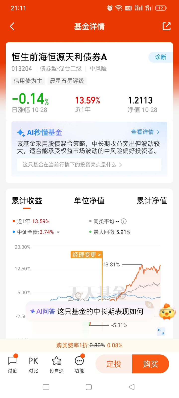 恒生前海恒源天利债券A:配置30%-50%,作为核心资产,帮我抵御市场波动。