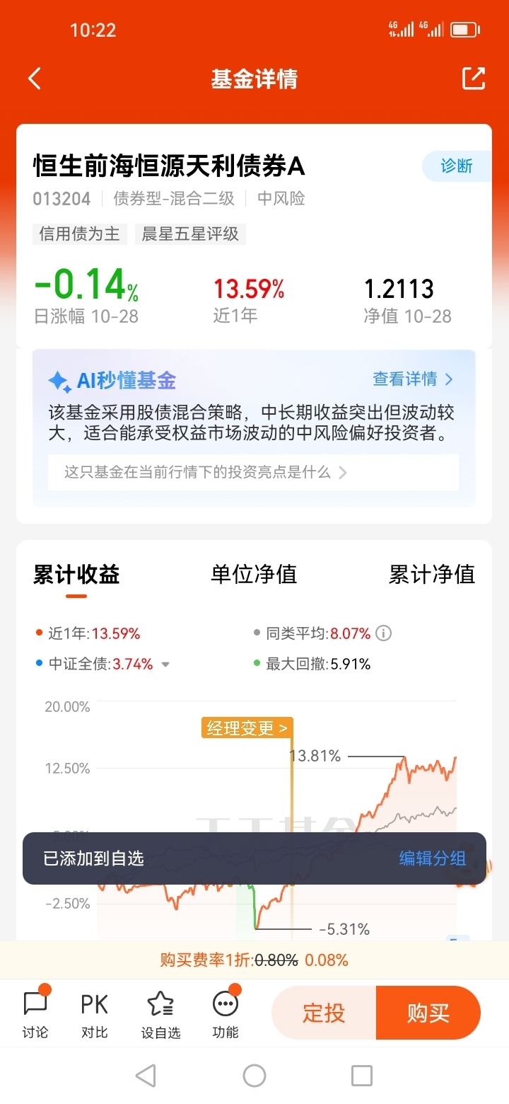 所以我关注了恒生前海恒源天利债券A(013204),因为它主要投资的是债券类资产,同时投资部分权益类资产,这样可以做到攻守兼备,相得益彰。@恒生前海基金