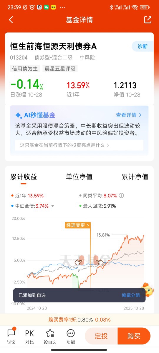 在波动加剧的市场环境中,能平衡风险与收益的基金尤为稀缺,恒生前海恒源天利债券A(013204)凭借三大核心优势脱颖而出,成为兼顾安全性与收益性的优质选择。