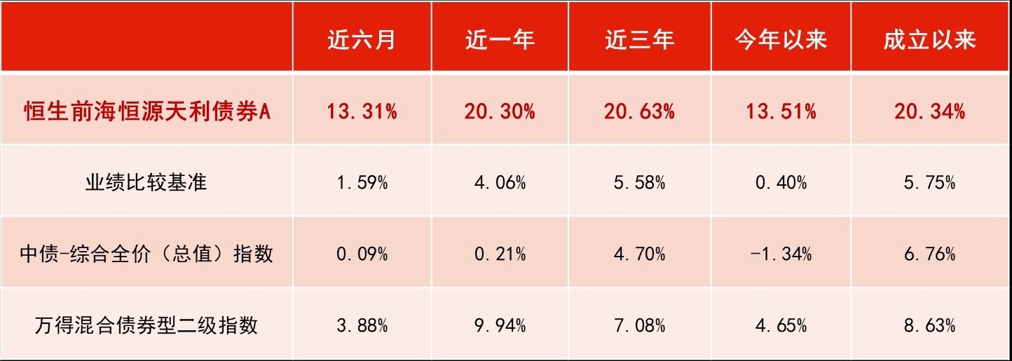 从投资目标上看,$恒生前海恒源天利债券A$ 的主要目标是追求经风险调整后的绝对收益,通过多种资产的合理配置,抵御和对冲不同市场的风险,争取把握较为确定性的收益。“固收+”策略,对于很多风险偏好适中的投资者来说仍然不失为一种性价比较高的投资策略。因为面对市场行情的复杂多变,“固收+”策略整体上还是发挥了“进可攻退可守”的优势,尤其在震荡行情中相比股市的过山车行情,固收+策略则体现出了“稳中有进”的特点,整体趋势向上,波动远远小于股市,能够为投资者创造比较友好的投资体验。