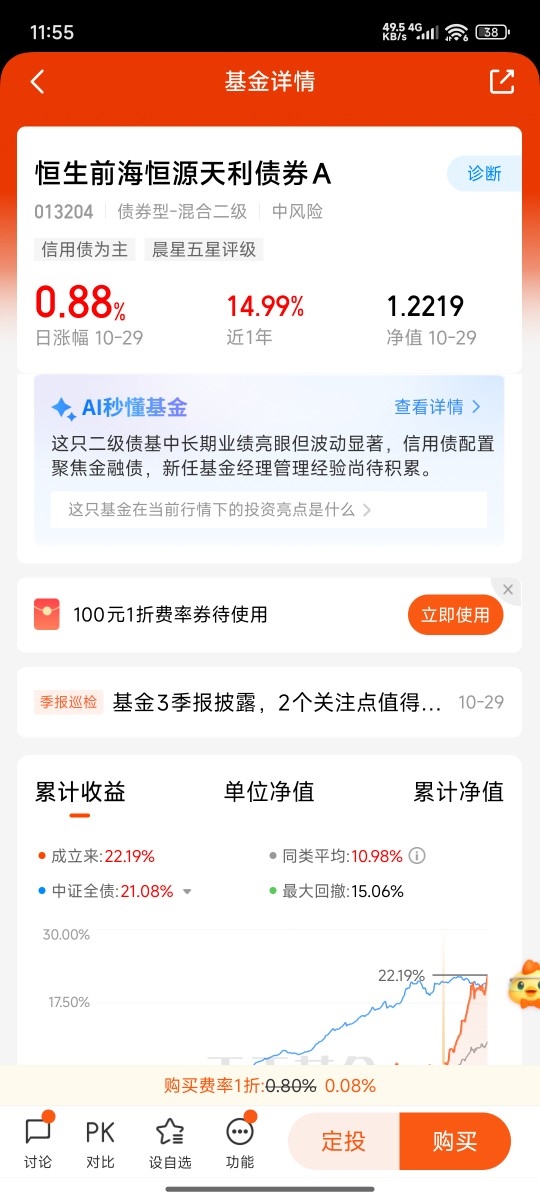 直到偶然刷到恒生前海恒源天利债券A(013204),抱着“试试水不亏就好”的心态投了小几千,没想到直接打开了我理财世界的大门!这大半年持有下来,它的每一个特点都精准戳中了我们刚毕业新员工的痛点,今天必须好好跟大家唠唠~