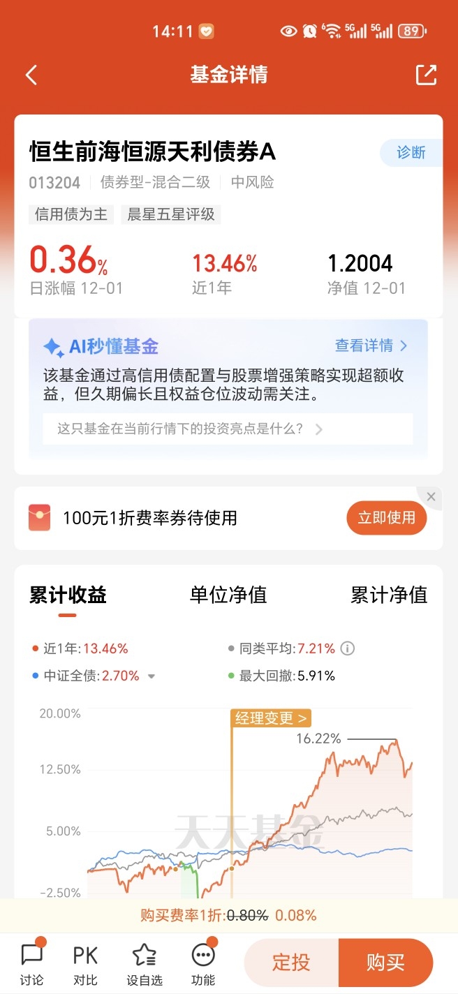 “#恒生前海恒源天利债券A 恒生前海恒源天利债券A未来大概率能维持稳健收益态势,契合中低风险投资者的长期预期,但也会面临利率波动、权益仓位波动等带来的净值波动风险,具体展望如下 : 1. 市场环境提供利好支撑:当前全球处于低利率环境,且央行降准预期升温,这种宽松货币环境对基金的债券底仓十分利好。而股市方面,人工智能等产业趋势明确,基金股票仓位聚焦的算力、AI硬件等科技赛道,还能借助财政贴息、金融支持新型工业化等政策东风获得发展助力,为基金的权益增强部分提供收益空间。 2. 自身投资策略适配未来市场:该基金“债券打底+股票增强”的核心策略很适配当下股债均有结构性机会的市场。债券端它以高评级债为主,还会动态调整久期规避风险,比如2025年Q3就缩短久期应对利率上行风险;股票端持仓分散,前十重仓股占比极低,能有效分散个股风险。且截至2025年12月1日,其股票仓位接近20%上限,后续若股市结构性行情延续,有望进一步捕捉收益。 3. 费率与规模保障运作优势:基金A类份额年化总费率仅0.4%,远低于同类二级债基,长期能减少费用对收益的侵蚀,吸引更多追求低成本投资的资金。截至2025年10月其规模达28.81亿元,这样的适中规模既便于基金经理灵活调整持仓,又能保障基金的流动性,为后续稳定运作奠定基础。 4. 需警惕潜在风险拖累表现:若未来国内经济复苏强度超预期,10年期国债收益率上行,可能导致债券估值下跌,拖累基金净值;而其持仓的科技成长股若遭遇行业估值回调,也会影响基金收益。另外,当前基金近三年最大回撤达9.95%,虽风控有亮点,但在市场极端波动行情下,仍可能出现超出预期的回撤。 #青禾创作计划# #低估补涨号启航# #今年你的投资目标达成了吗?# #12月你看好哪条投资主线?# #12月基金投资策略# #白银价格续创新高!空间还有多大?#