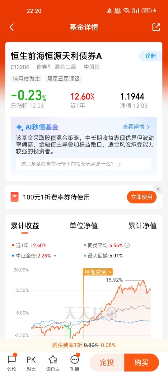 #恒生前海恒源天利债券A,我非常看好恒生前海恒源天利债券A这只基金,它凭借诸多优