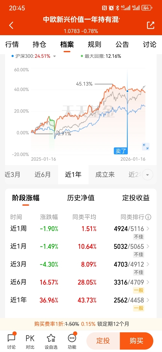 实在受不了了,1.13买入,当时看着挺好的,出来不想在闹心了,修整了一段时间,现在又入了华安有色,涨的挺好,万一那天不行了,也可以随时跑路,不用像套我好几年
