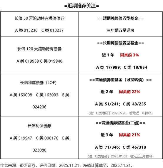五、长信30天滚动持有短债债券型证券投资基金、长信120天滚动持有债券型证券投资基金、长信利鑫债券型证券投资基金(LOF)、长信利保债券型证券投资基金由长信基金管理有限责任公司(以下简称“基金管理人”)依照有关法律法规及约定申请募集,并经中国证券监督管理委员会(以下简称“中国证监会”)许可注册。长信30天滚动持有短债债券型证券投资基金、长信120天滚动持有债券型证券投资基金、长信利鑫债券型证券投资基金(LOF)、长信利保债券型证券投资基金为债券型基金,其预期风险和预期收益高于货币市场基金,低于股票型基金和混合型基金。基金的基金合同、基金招募说明书和基金产品资料概要已通过中国证监会基金电子披露网站【http://eid.csrc.gov.cn/fund/】和基金管理人网站【https://www.cxfund.com.cn/】进行了公开披露。中国证监会对基金的注册,并不表明其对基金的投资价值、市场前景和收益作出实质性判断或保证,也不表明投资于基金没有风险。