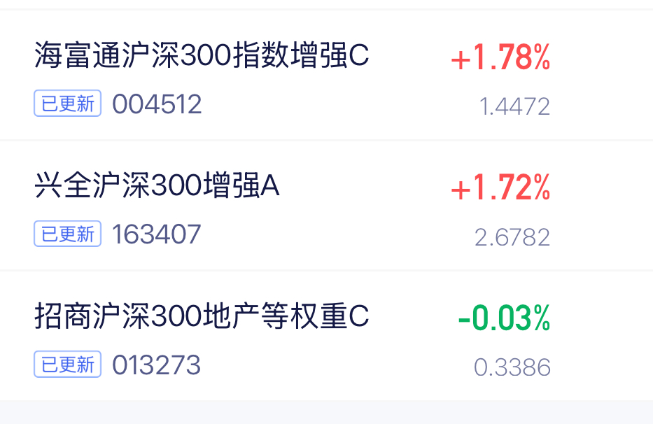 $海富通沪深300指数增强C$ 今天不逊色,上涨1.78%,近一年44.22%,各阶段跑赢沪深300,正向增强效果明显