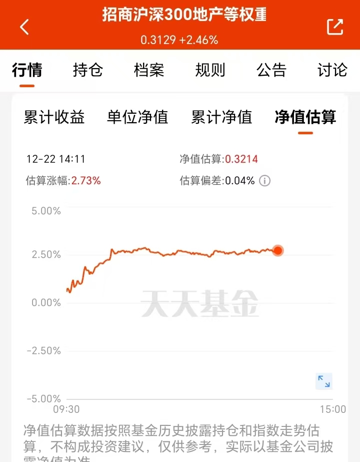 A股今天接着反弹,地产板块也跟着上涨了一波。从2025 年四季度开始,地产竣工的降幅越来越小,行业压力慢慢减轻,市场对明年年初新一轮降息有所预期,叠加后期更大力推动房地产市场止跌回稳政策扶持下,我觉得地产板块可逢低布局起以来呢。我关注的$招商沪深300地产等权重指数C(OTCFUND|013273)$今日盘中涨了2.73%,这基重仓保利发展、招商蛇口这些头部房企,相比其他地产指数,这只的小票占比更高,更有进攻能力,我也打算加大力度布局起来呢。
