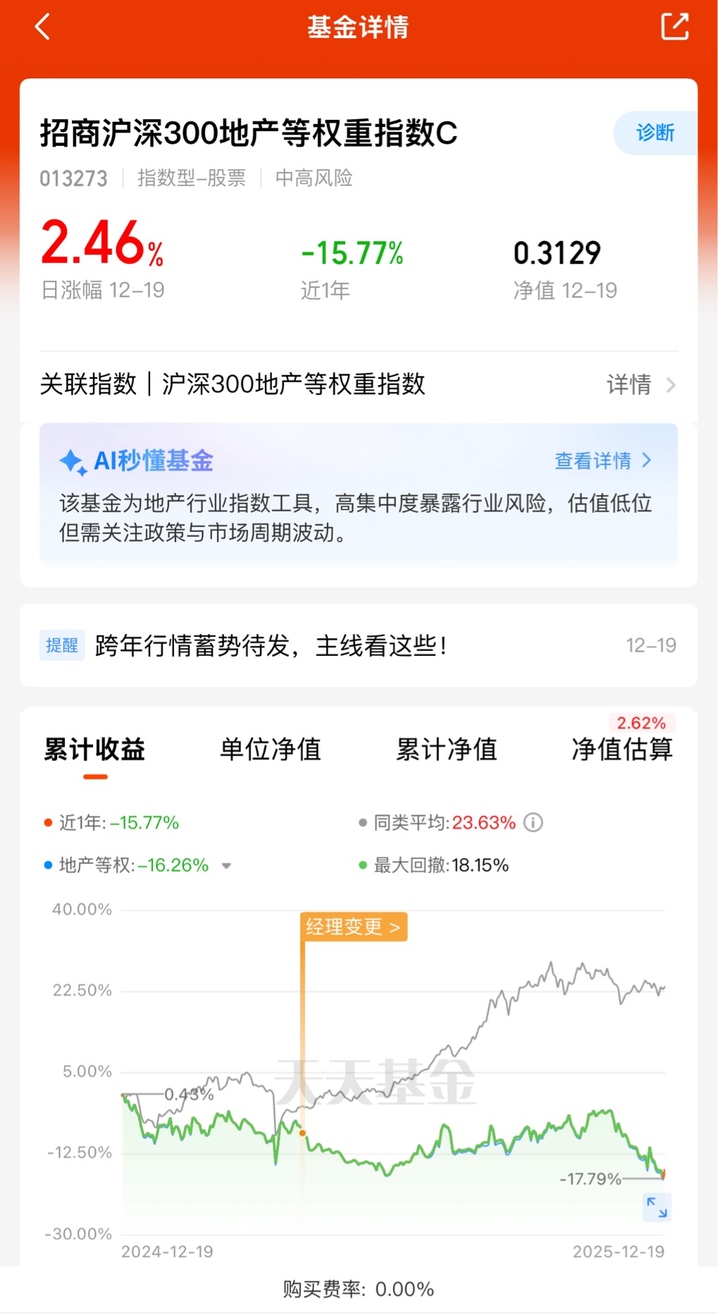 $招商沪深300地产等权重指数C$ 正契合当前 “老登复苏” 的交易逻辑。目前大涨近2.62%!