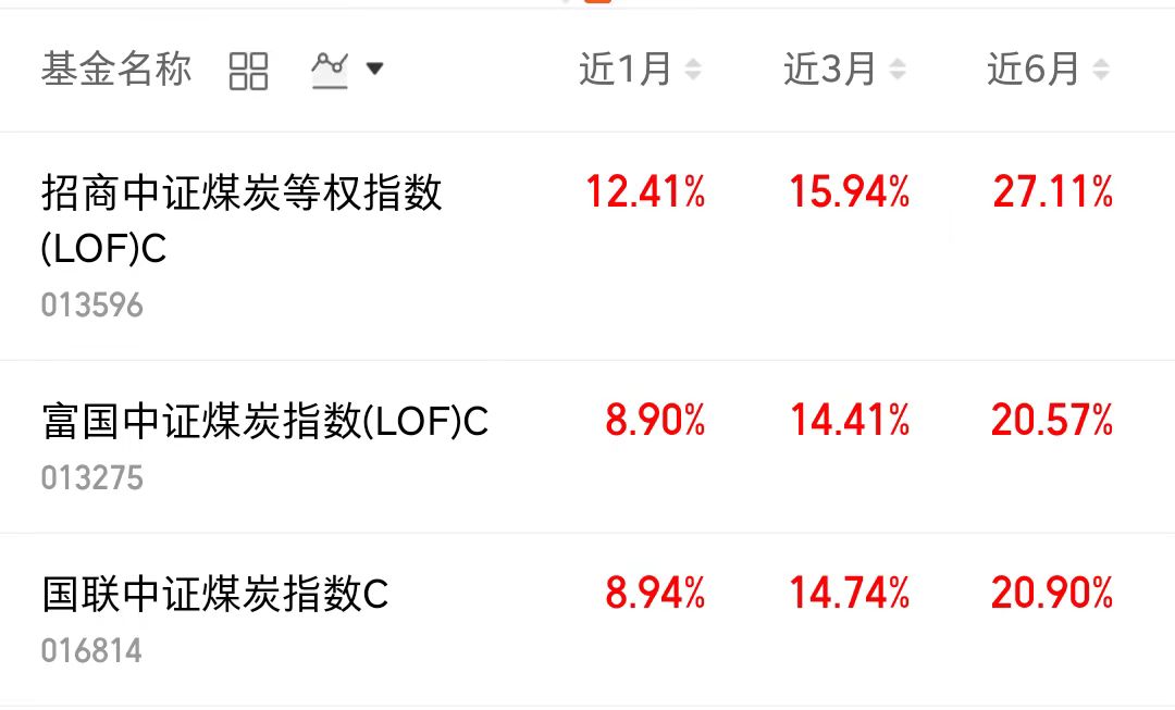 $富国中证煤炭指数(LOF)C(OTCFUND|013275)$近一个月上涨8.9%$国联中证煤炭指数C(OTCFUND|016814)$近一个月上涨8.94%