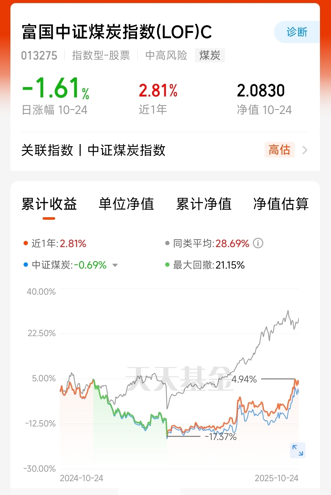最近能源板块真给力!我拿的富国中证煤炭C,一周涨2.6%、一月飙10%,跑赢一大