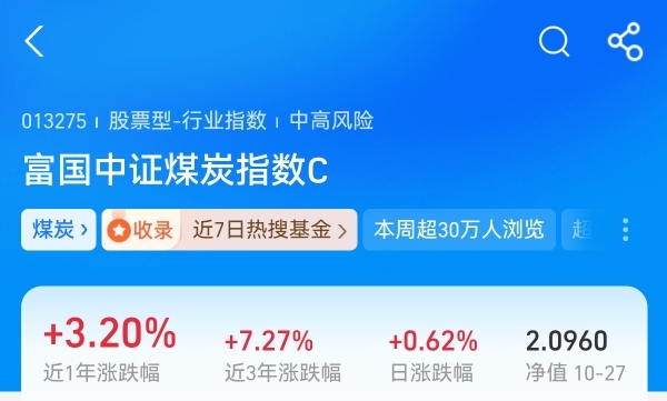 随着10月下旬入冬在即,冬季取暖与能源保供需求进入高峰,为煤炭提供强季节性支撑;全球地缘政治复杂下,煤炭作为国内最可靠的能源“压舱石”,战略价值被重新评估。 看历史业绩富国中证煤炭近半年涨超20%,业绩亮眼,是把握板块红利的优质标的,今天布局等待吃肉了。