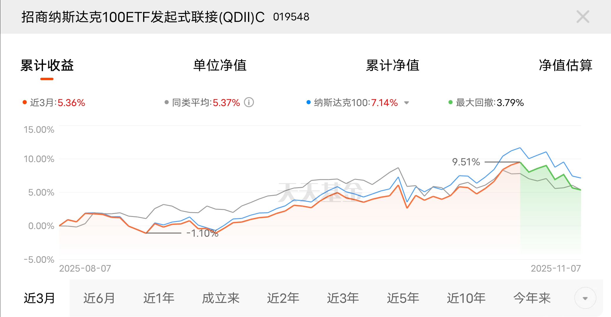 现在美股三大指数走高,背后是美政府停摆本周末有望结束的消息。招商纳斯达克100ETF联接(QDII)C近3个月收益5.36%,最后一天单日只能投1000,布局海外科技股好时机。