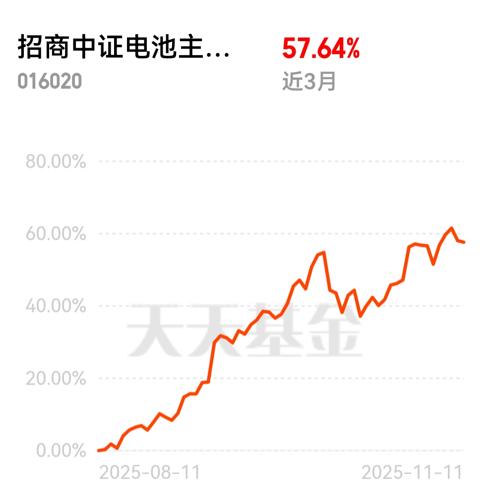 近期A股分化明显,热门赛道来回切换,但电池行业因为政策支持一直坚挺,招商中证电池主题ETF联接C近三个月涨57.64%,近一年收益第一,昨天回调时跌幅最小,跟着它投资心里有底。