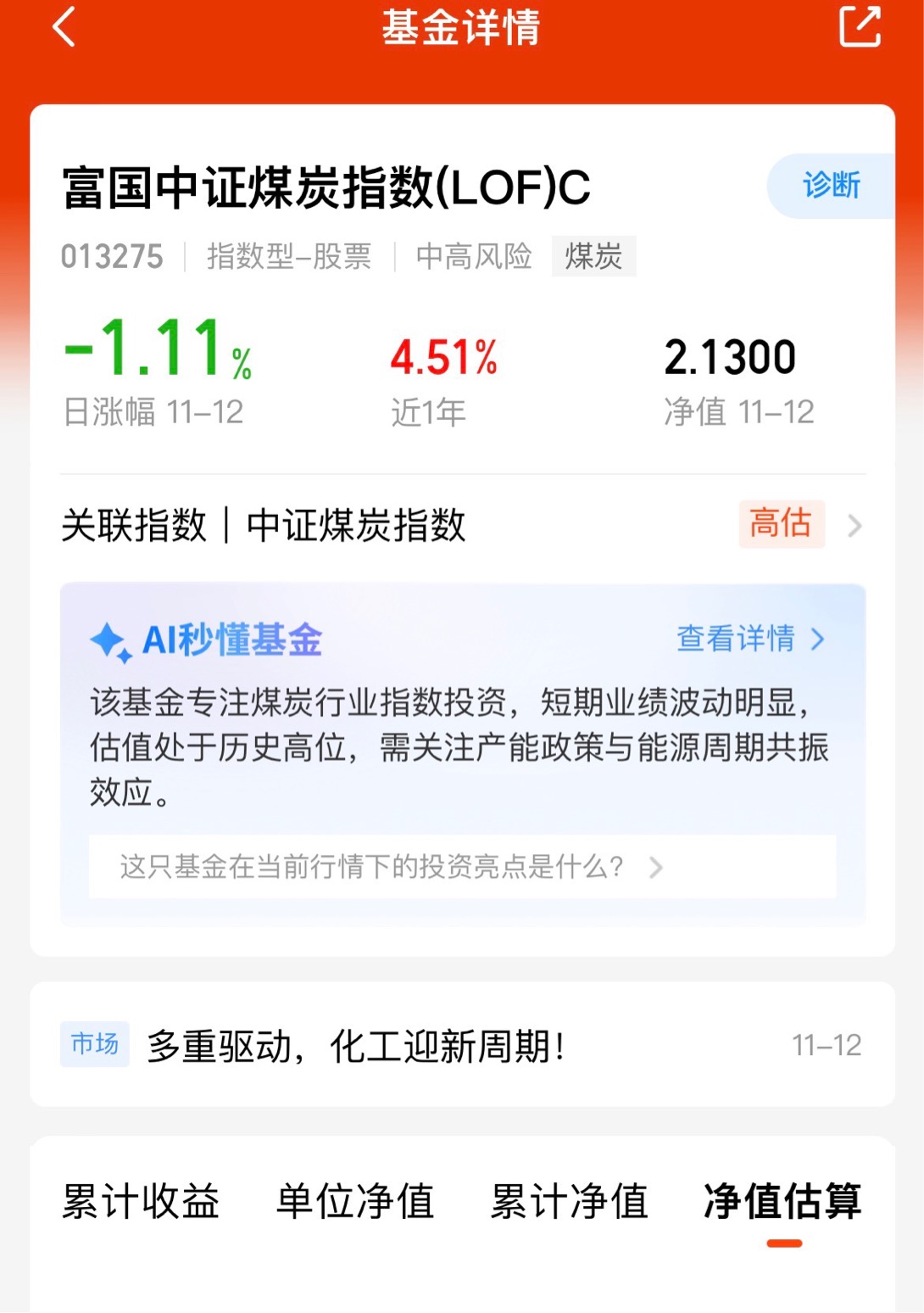 这阵子加仓了富国中证煤炭C,持仓体验挺稳跟踪误差仅0.44%,几乎贴着指数走;扎