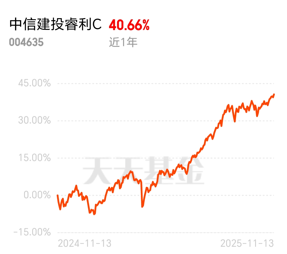 入手富国煤炭C后,又配了点中信建投睿利C,看它近一年涨了40%,主投顺周期和专精特新,节奏踩得稳。