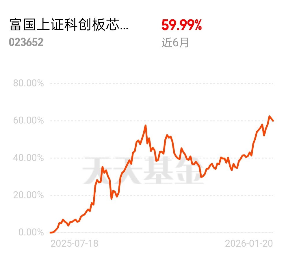 芯片行情火出圈,存储、算力都在涨,十五五聚焦芯片自主。$富国上证科创板芯片ETF发起式联接C$ 近1月 18.77%,半年 59.99%,继续跟着趋势走,赚点零花钱。
