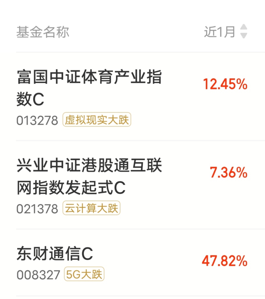 $富国中证体育产业指数(LOF)C$ 近一个月涨了1