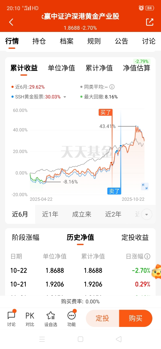 看到没有,这个是8月尾买入的黄金产业,8月尾的时候基本上每只基金都涨上天了,只有