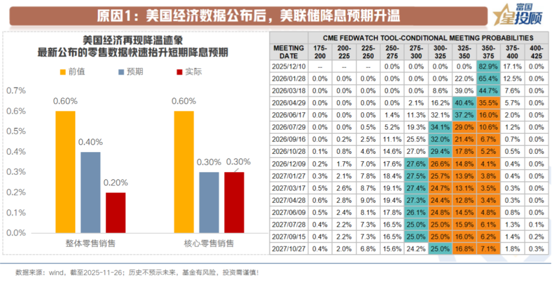 美联储降息预期随之上升,12月降息概率再度回到80%以上。