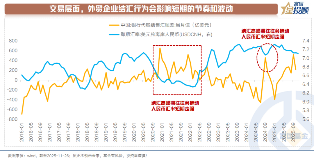 2)交易层面,外贸企业结汇行为会影响短期的节奏和波动
