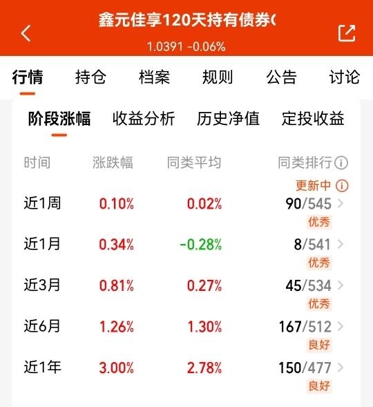 $鑫元佳享120天持有债券C$稳健理财首选!近一年稳赚3%,大幅跑赢长债,同类排