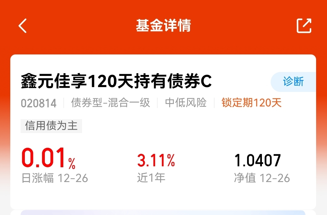 行情稳收益稳,$鑫元佳享120天持有债券C$太让人放心,今晚又稳稳1个大蛋入账,