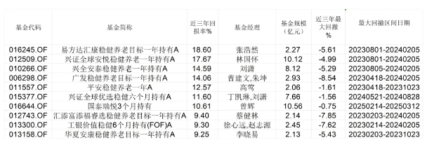 表:截至三季度末,近三年来回报率靠前、回撤率较小的10只FOF明细 来源:Wind数据 界面新闻整理