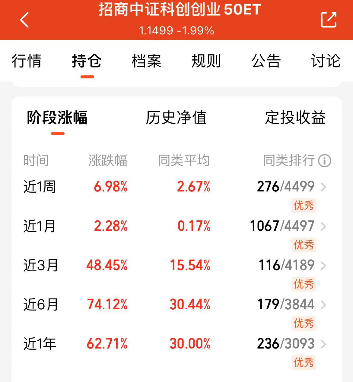 今天在震荡的行情中,我发现了一只好基金。$招商中证科创创业50ETF联接C$ 10月30日跌了1.99%,不少人可能慌了,但其实这正是关注的好时机。它的优势很突出:C类费率低,销售服务费才0.4%,而且跟踪的指数包含50只科创创业龙头,比单买个股风险小多了。