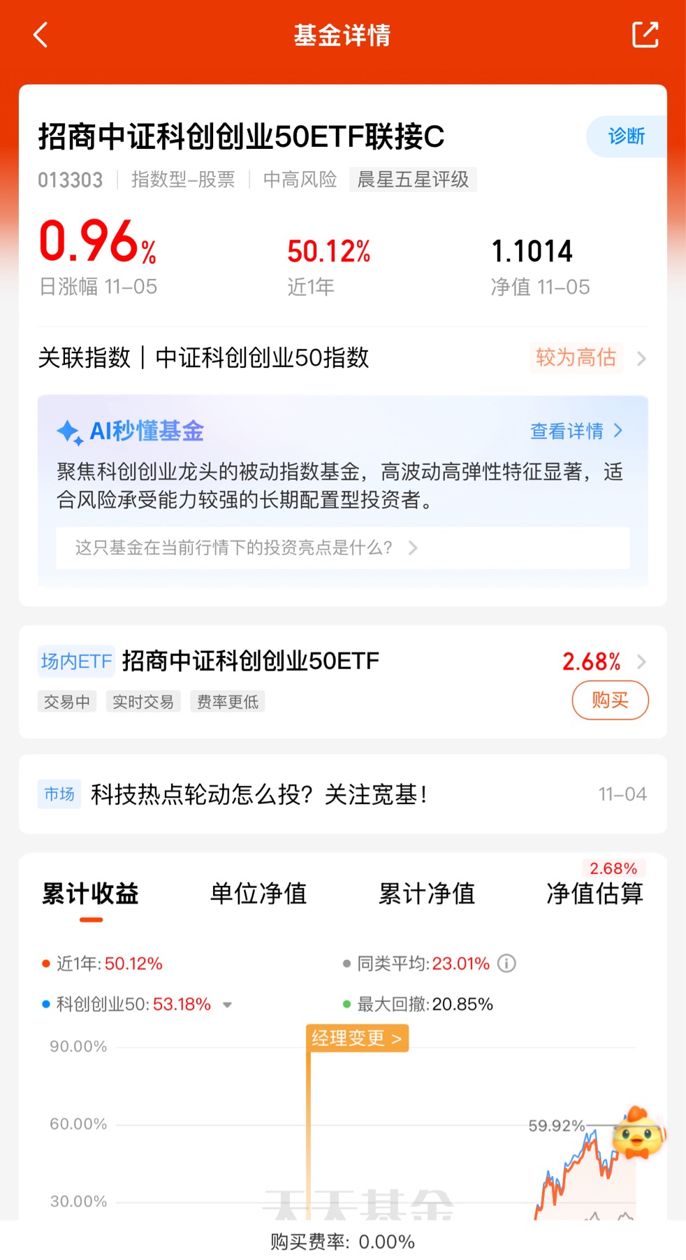 作为硬核科技标杆指数,其亮眼表现直接带动$招商中证科创创业50ETF联接C$ 净值攀升。