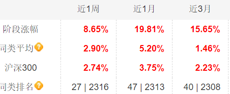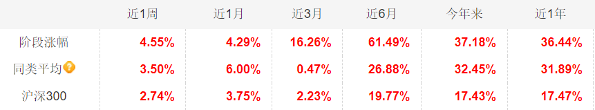 近6月大涨61.49%,跑赢同类平均超34%。春季行情渐进,黑马继续持有待涨,如有好机会准备再补点仓位。