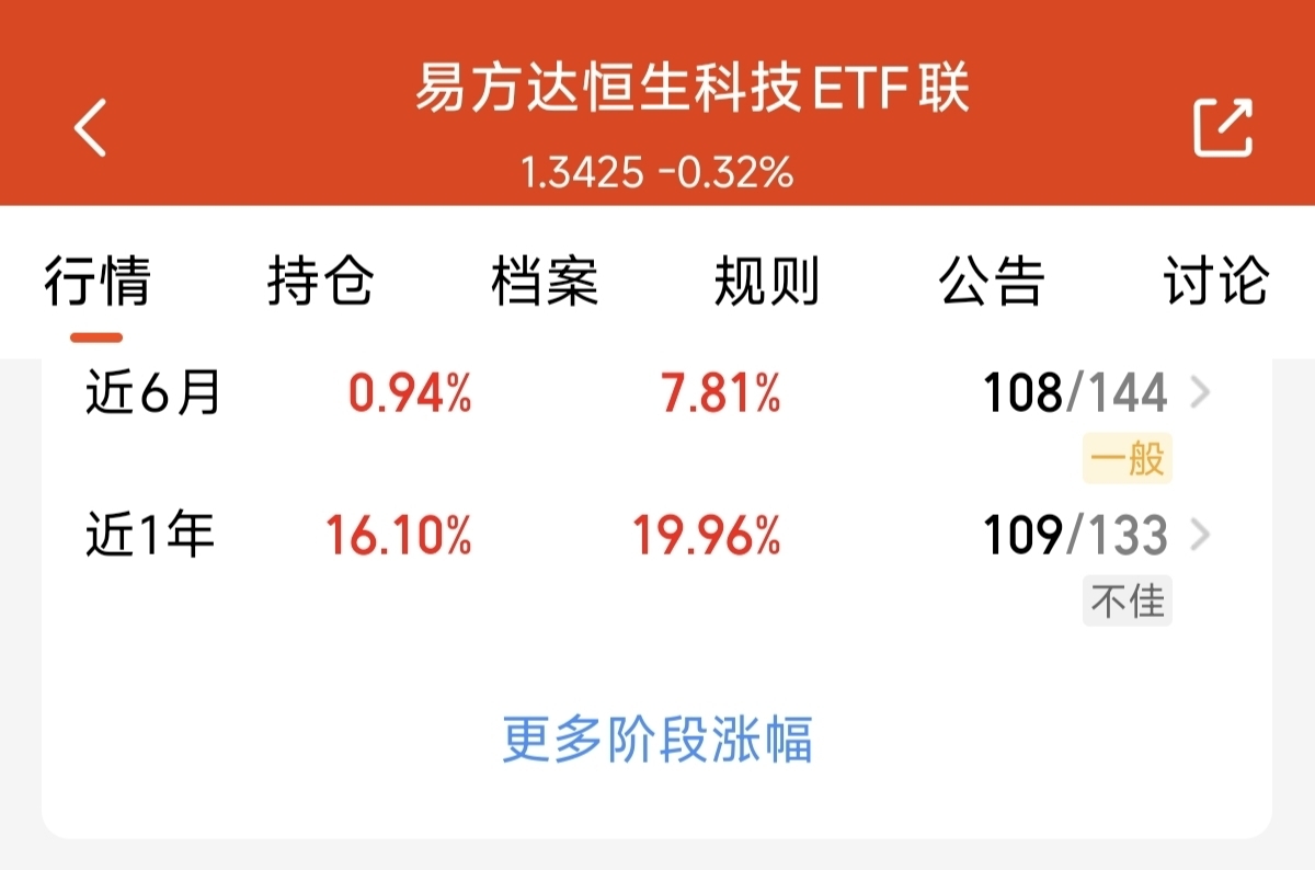 港股今天终于好起来了。恒生科技指数今天涨超两个点。目前股指整体还在历史地位。恒生科技指数交港股互联网优质龙头。龙头业绩确定性比较强。个股估值都是被错杀。随着市场开始轮动,资金已经开始回流港股,港股股的补涨空间还是比较高。$易方达恒生科技ETF联接(QDII)C$ 这是聚焦港股科技的指数基金。紧密跟踪恒生科技指数。跟踪的精准度一直比较高。目前港股新一轮行情已经启动。我看好未来的修复上涨表现。